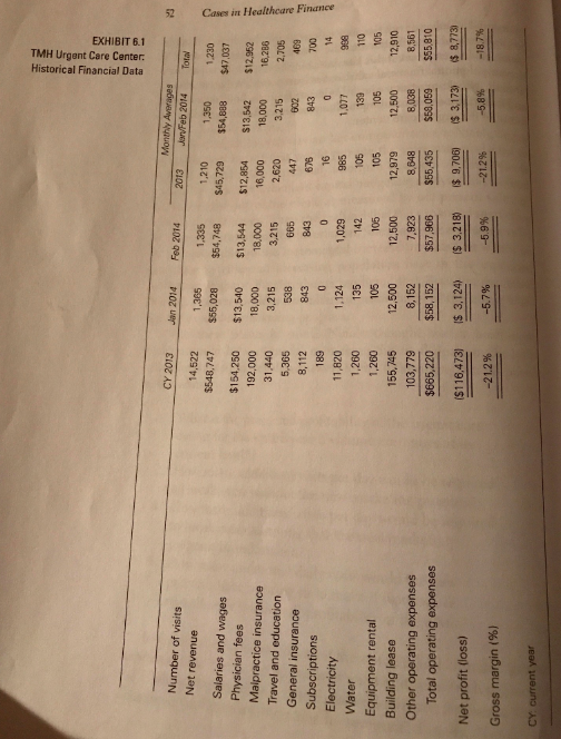 Historical Financial Data Tmh Urgent Care Center Chegg Com